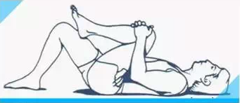牵拉一侧膝关节直至感觉到下腰部及臀部适度的牵伸,另侧膝关节重复相同动作