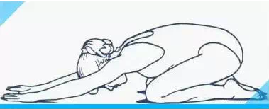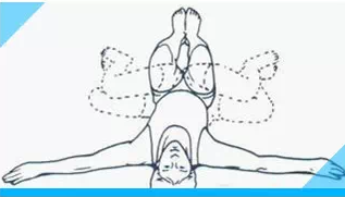 坐位膝关节分开,身体前弯,保持对下腰部舒适的牵伸