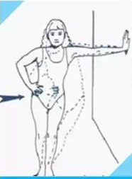 一侧上肢支撑墙面,另侧上肢辅助髋关节缓慢下墙面活动