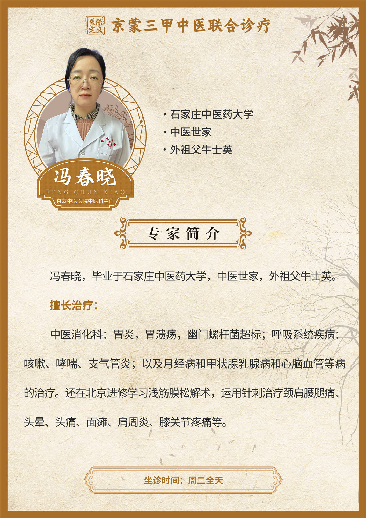 1、内科疾病:头痛,眩晕,心慌,胸痛,失眠,长期疲乏少力,咳日久不愈,胃痛胃胀;肩痛(肩周炎),颈椎僵痛,腰腿痛,长期便秘或腹泻,小便短数等。擅长肺结节,肝癌,肺癌疾病治疗。 2、妇科疾病(如:痛经,月经不调及产后恢复);儿科疾病(如小儿久咳,食欲不振等);皮肤疾病(如湿疹,荨麻疹等)。 3、擅长调理体质,如虚寒体质,寒湿体质,易上火体质,气血亏少等。