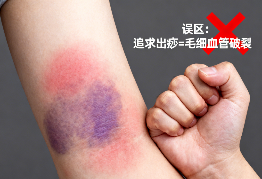 有很多人认为必须弄出紫红色的痧才是“排了毒”,这是不正确的,那根本不是排毒,而是“毛细血管破裂”。对于气血虚弱的人来说,这更是倒霉的事,是在耗伤气血。正确的力度应当是微微发热、发红就可以,是那种如同暖流过的舒适感觉,并非疼痛感。