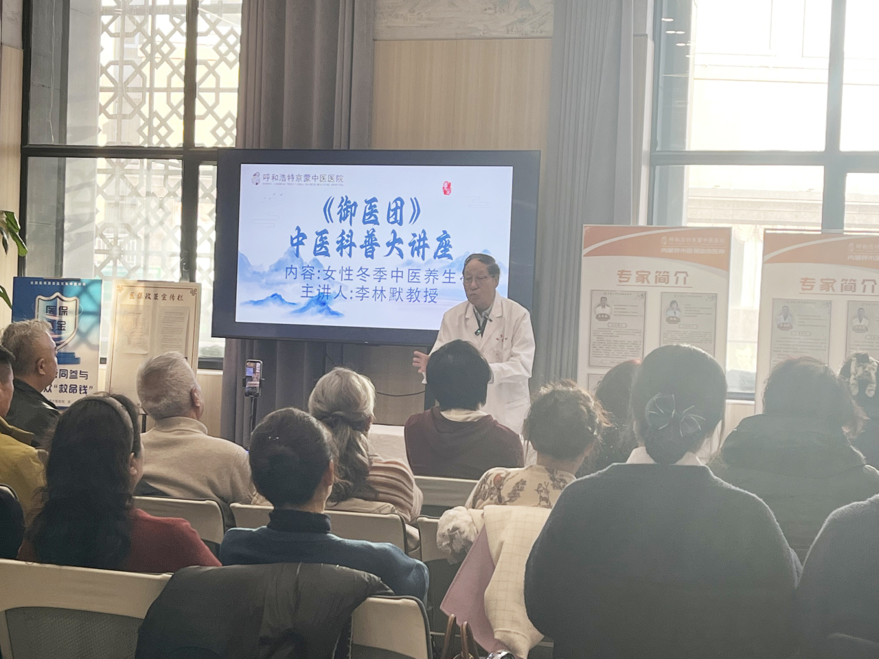 为弘扬传统中医文化,普及科学养生知识,帮助大众树立“治未病”的健康理念,12月9,京蒙中医医院特邀知名中医专家李林默教授开展主题公益养生讲座。活动现场座无虚席,气氛热烈,市民齐聚一堂,共赴一场干货满满的健康之约,在轻松的氛围中收获了实用的中医养生智慧。
